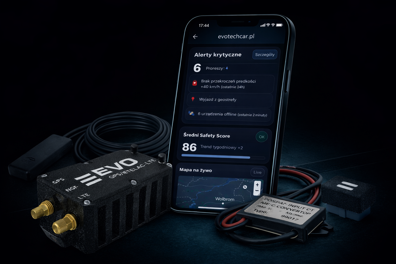 EVO TechCar Fleet to system, który w czasie rzeczywistym monitoruje pojazdy i zachowanie kierowców, umożliwiając szybkie reagowanie na problemy techniczne oraz świadome zarządzanie flotą.